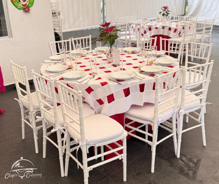 - Montaje Imperial (Mesa cuadrada o redonda y Silla Tiffany blanca)
